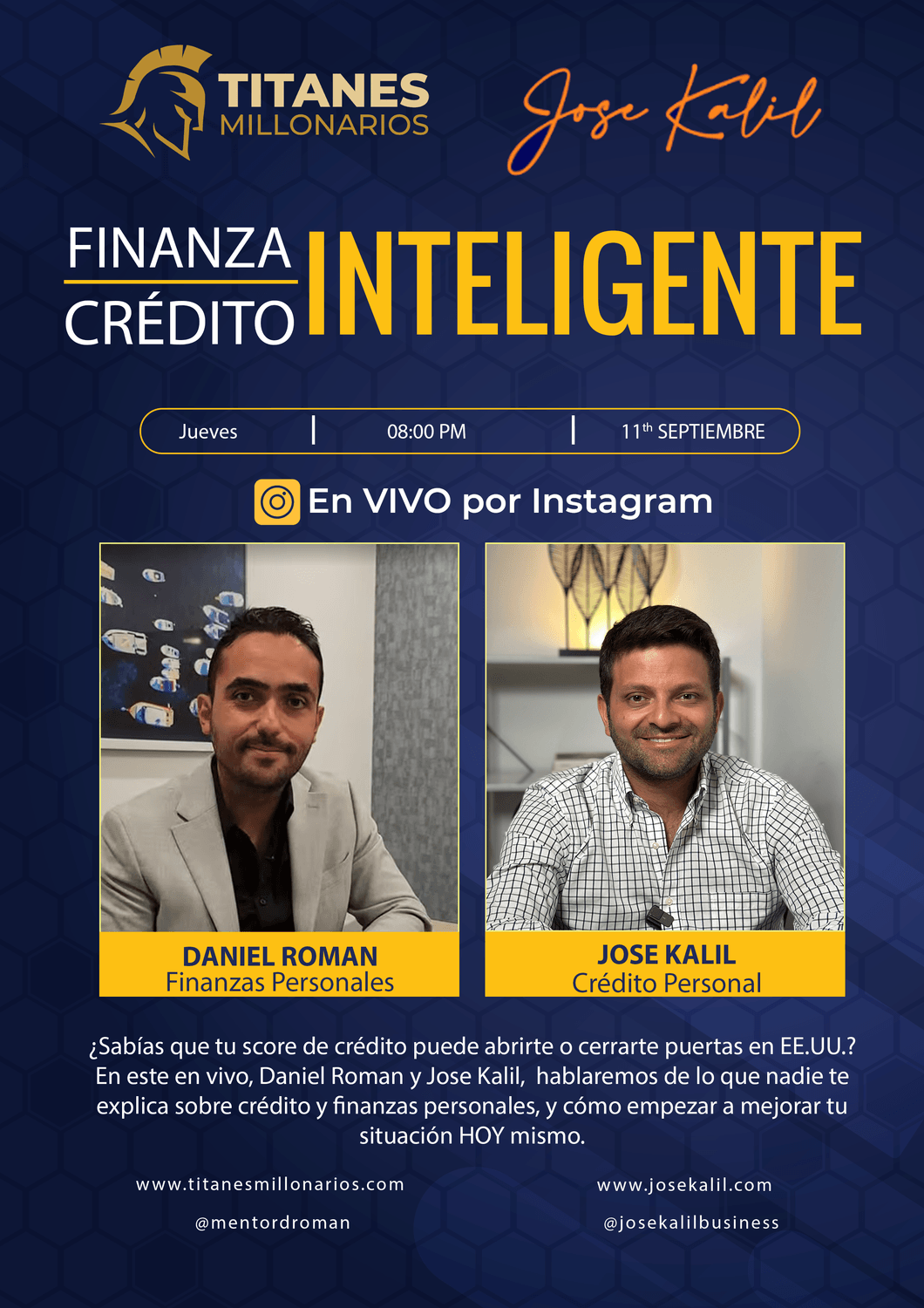 Acompáñanos en este en vivo exclusivo el 11 de Septiembre donde junto a Jose Kalil, experto en crédito personal en EE.UU., hablaremos sobre cómo tomar el control de tu dinero y mejorar tu score de crédito.